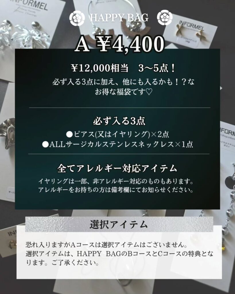 Aコース ¥4,400 (¥12,000相当/3〜5点)