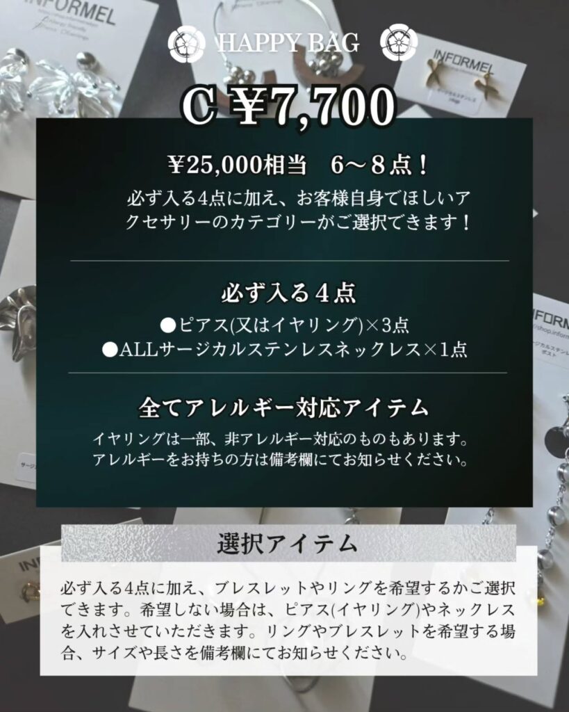 Cコース ¥7,700 (¥25,000相当/6〜8点)
